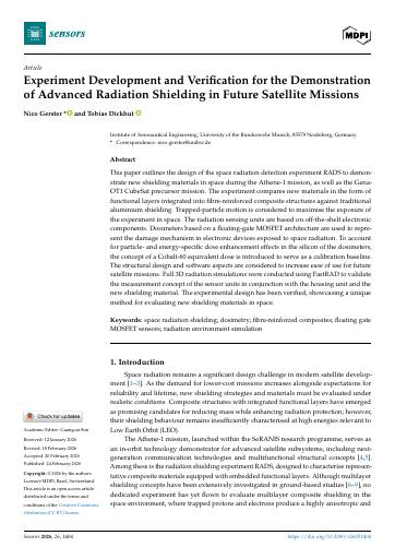 Experiment Development and Verification for the Demonstration of Advanced Radiation Shielding in Future Satellite Missions