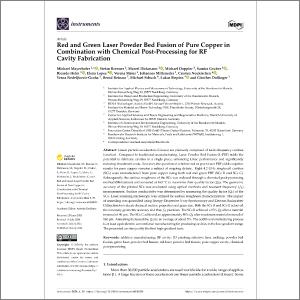 Red and green laser powder bed fusion of pure copper in combination with chemical post-processing for RF cavity fabrication
