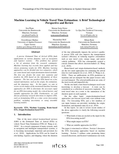 Machine learning in vehicle travel time estimation: A brief technological perspective and review