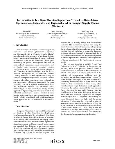 Introduction to the minitrack on intelligent decision support on networks - data-driven optimization, augmented and explainable AI in complex supply chains